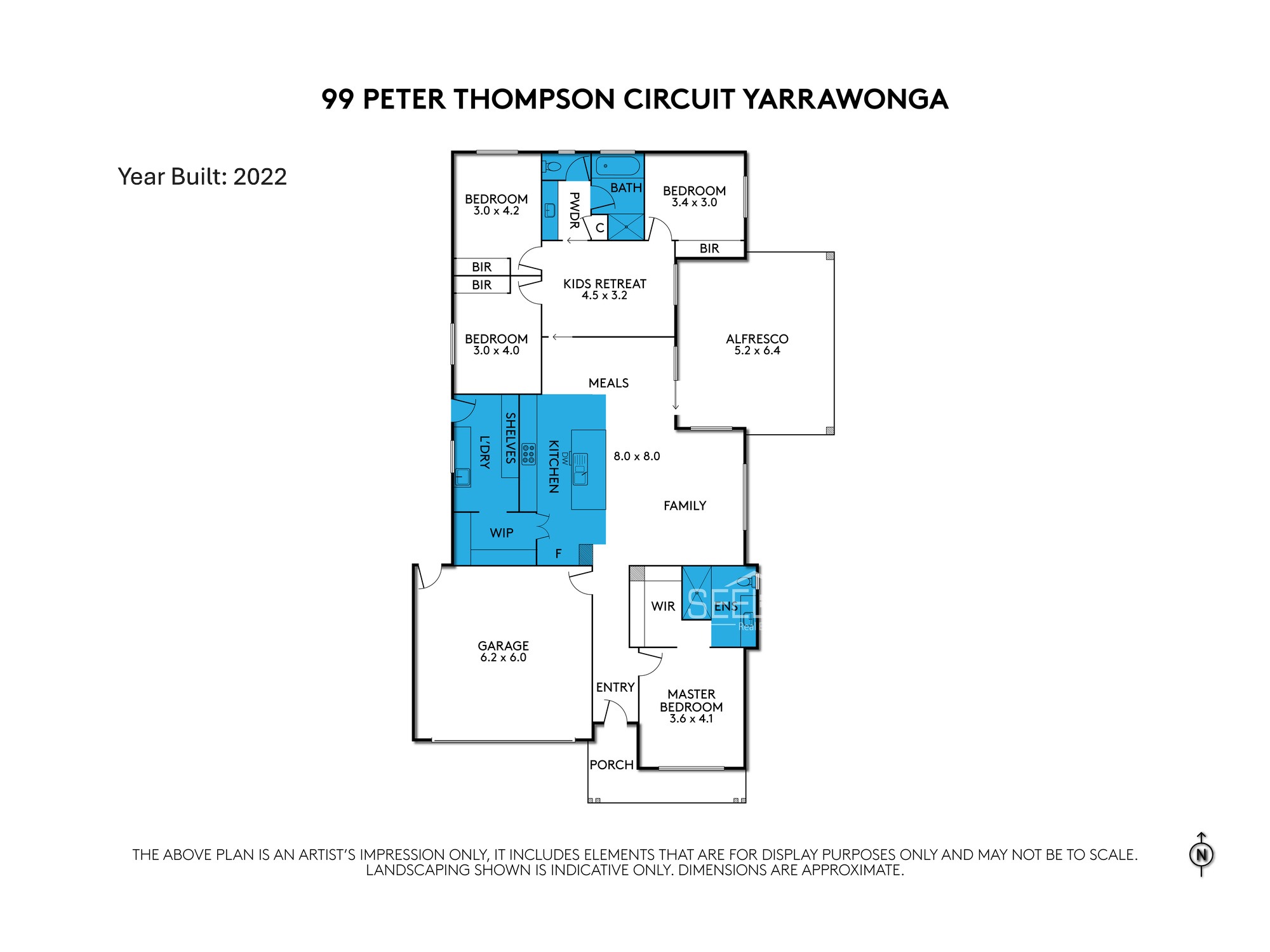 Soft-closed cupboards, double fridge space, BR 1- double shower, powder room, second lounge/kids room, alfresco, pitched roof, rear access
