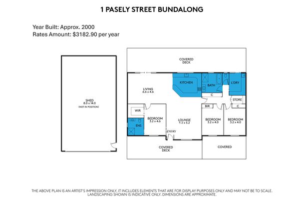 Huge shed; Split system; filtered water; study nook; loads of storage; decking; large shed; water tank